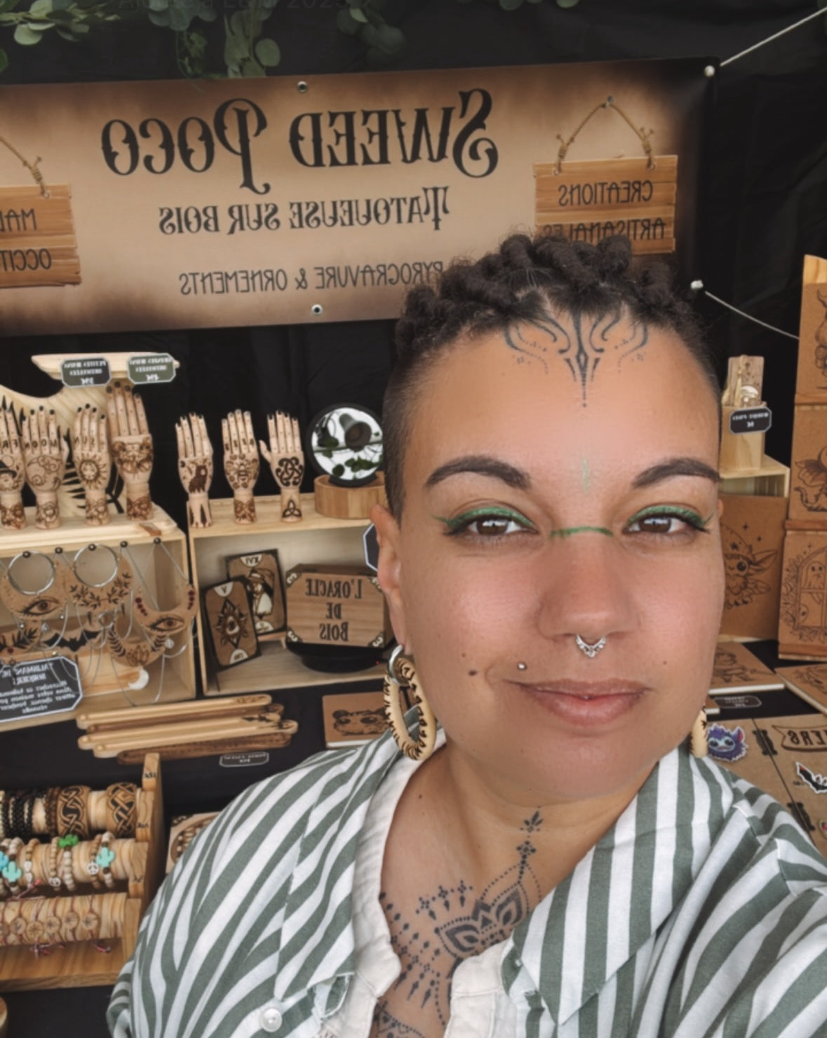 Je suis Poco et je fais de la pyrogravure sur bois. Bienvenue dans mon univers mêlant magie et petites créatures !