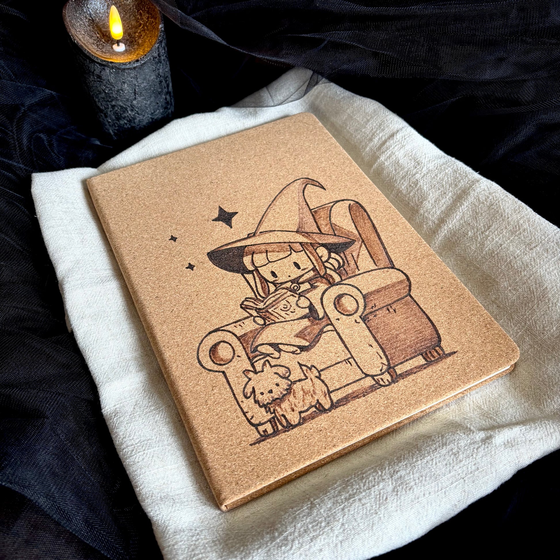 CARNET EN LIEGE SORCIERE FAUTEUIL (Grand format 18x25cm)