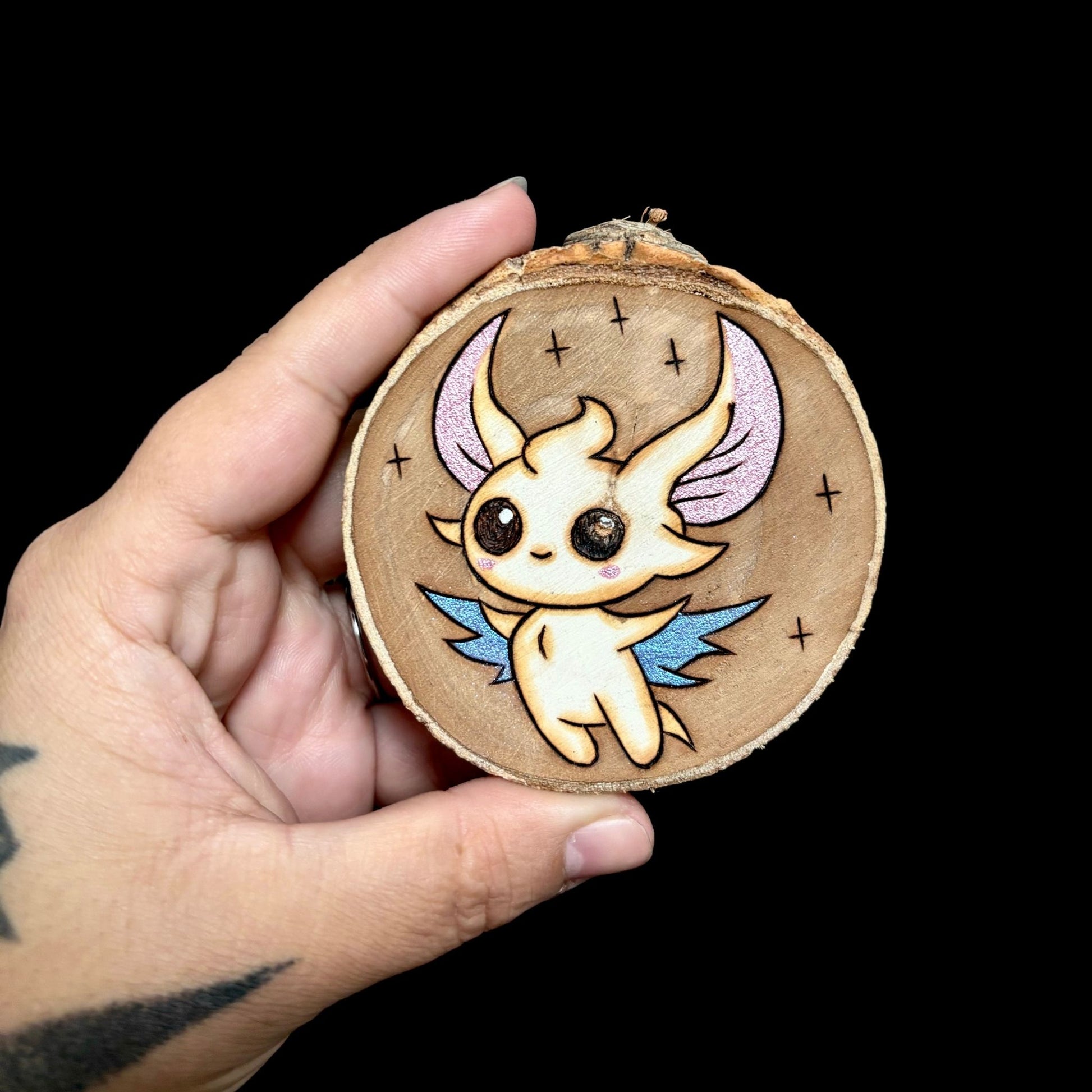 Ajoutez une touche de magie à votre cuisine avec ce magnet en bois pyrogravé à la main et peint à l'aquarelle. Accrochez y vos notes ou photos tout en admirant la créature magique qui vous accompagne. Un design unique pour un peu de fantaisie au quotidien.