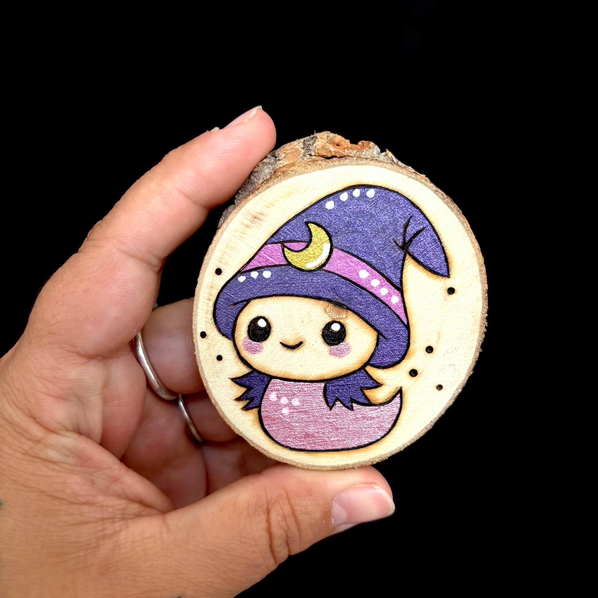 Ajoutez une touche de magie à votre cuisine avec ce magnet en bois pyrogravé à la main et peint à l'aquarelle. Accrochez y vos notes ou photos tout en admirant la créature magique qui vous accompagne. Un design unique pour un peu de fantaisie au quotidien.