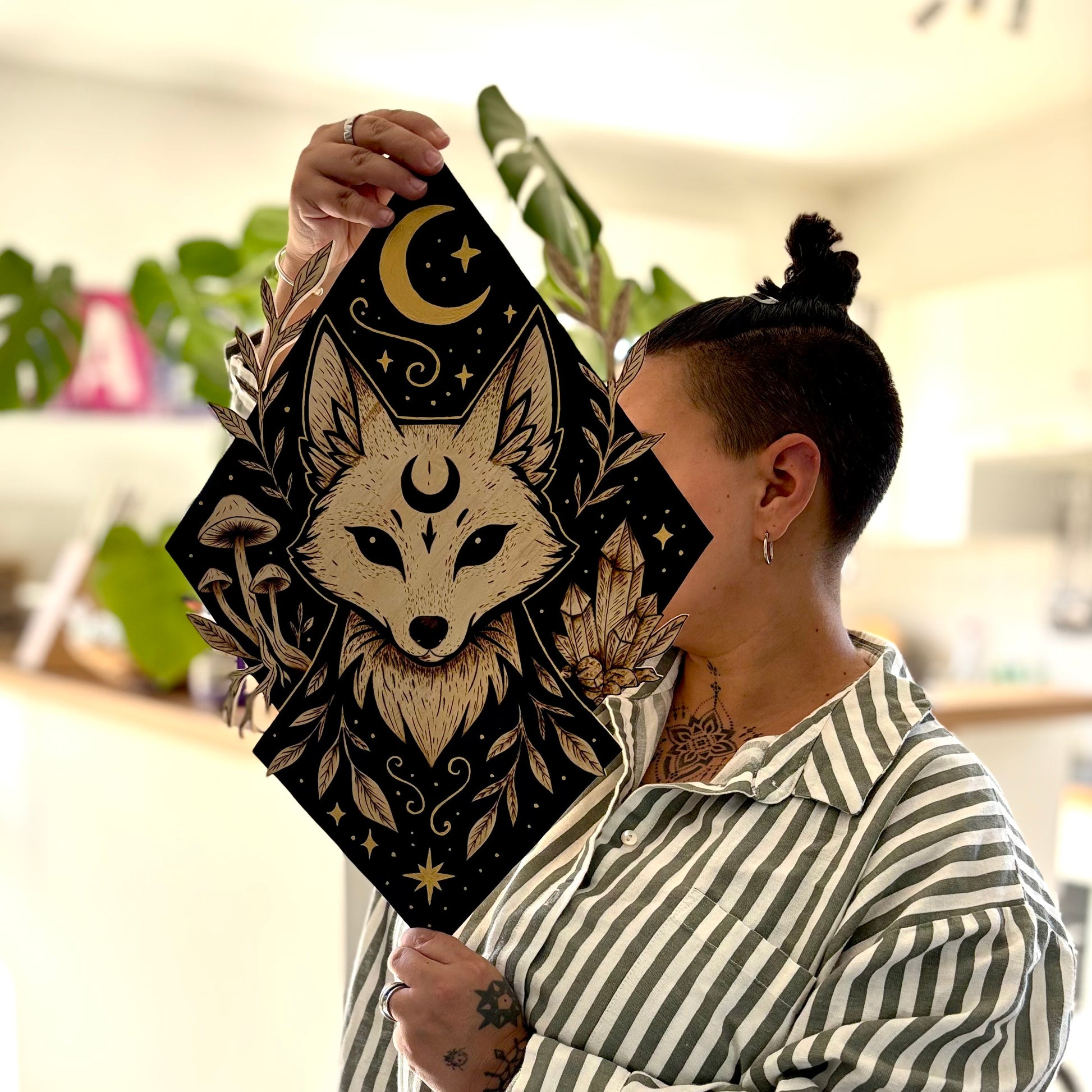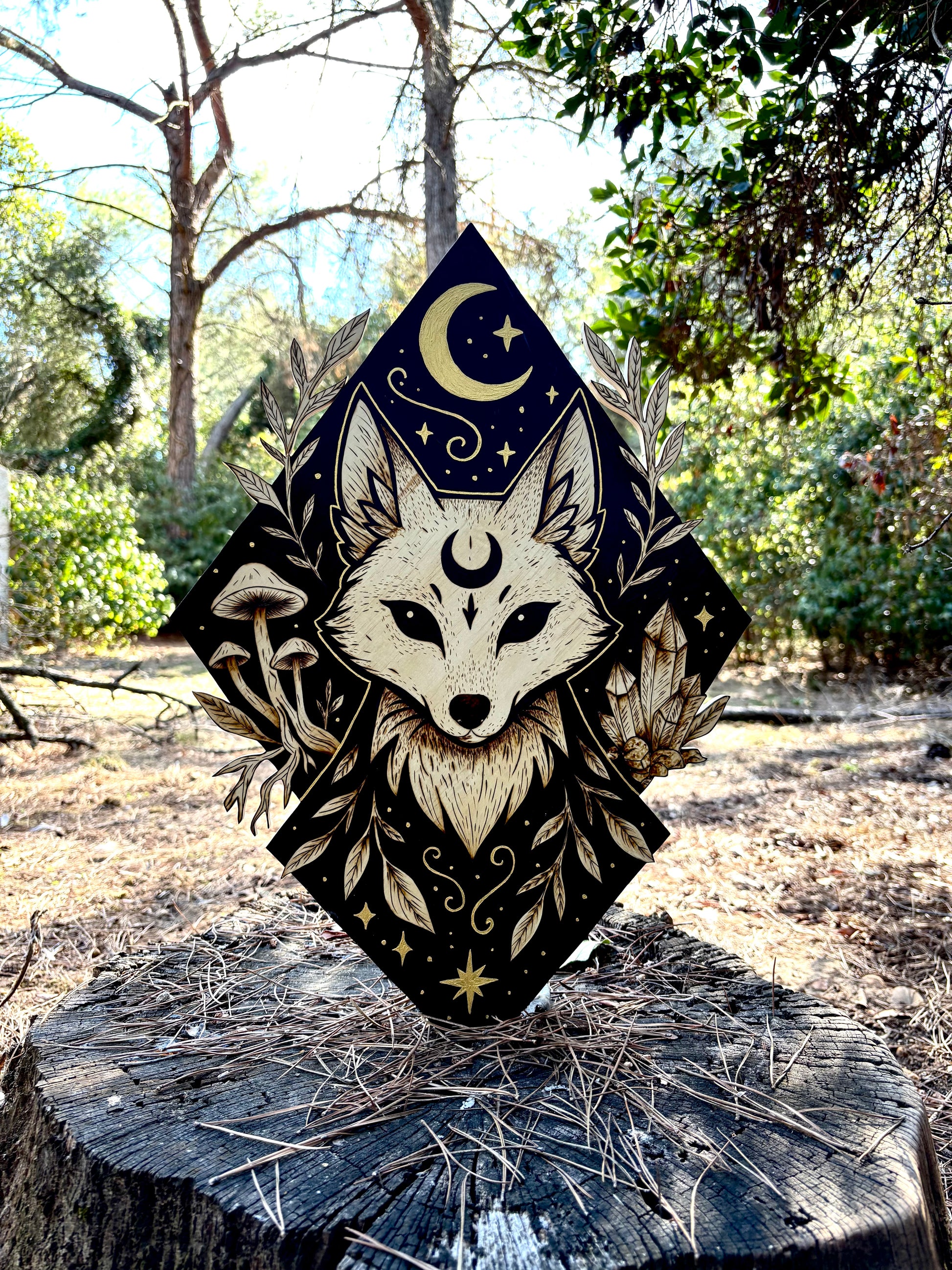 Ce tableau trouvera parfaitement sa place dans un intérieur bohème, ésotérique ou forestier. Il apportera une touche de mystère et de magie à votre décoration, tout en portant l’empreinte de l’artisanat.